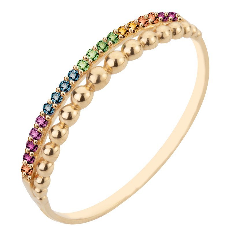 Anel bolinhas em ouro 18k com zircônias coloridas.
