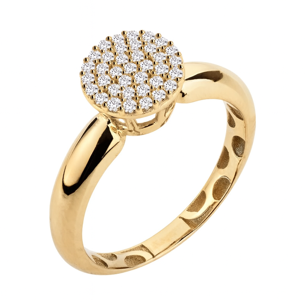 Anel chuveiro redondo médio em ouro 18k com zircônias.