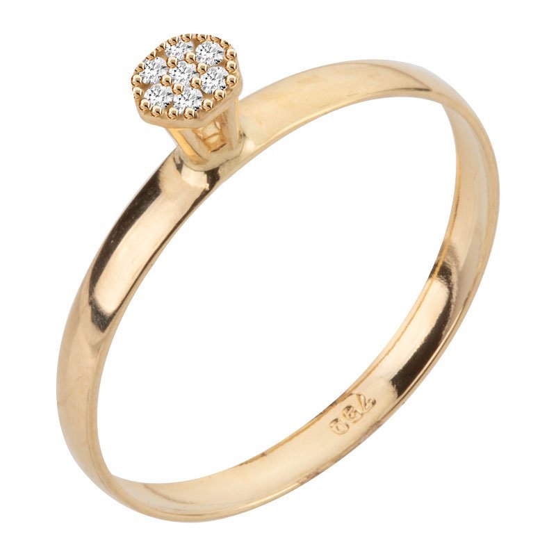 Anel chuveiro sextavado em ouro 18k com zircônias.