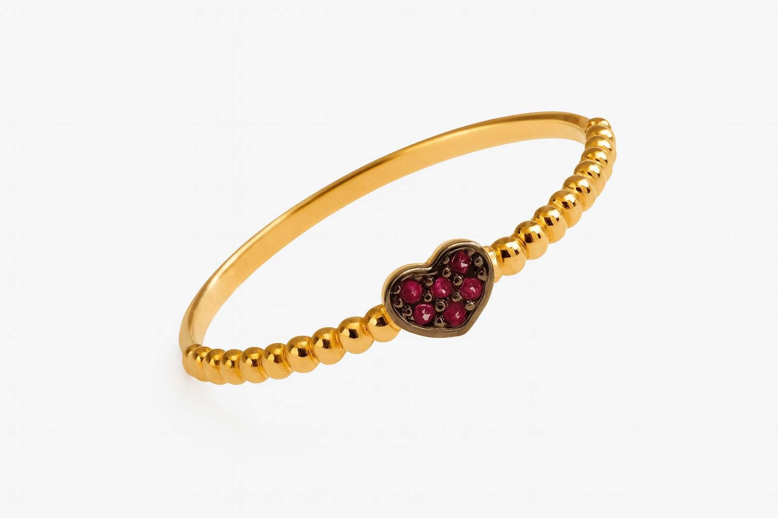 Anel coração bolinhas em ouro 18k com zircônias.