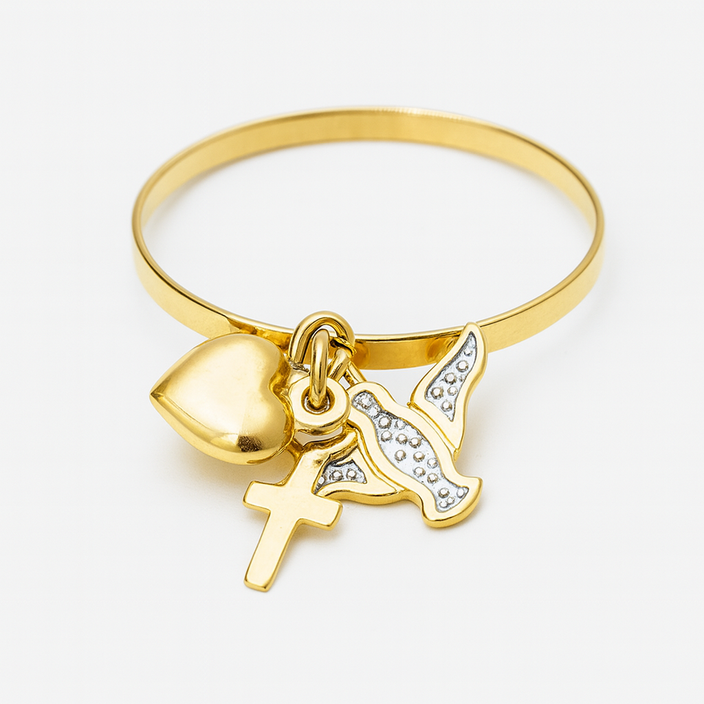 Anel Cruz, Coração e Espírito Santo pendurados em ouro 18k e ouro branco.