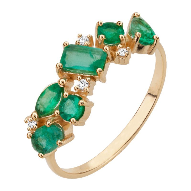 Anel em ouro 18k com esmeraldas e brilhantes de 1pt.