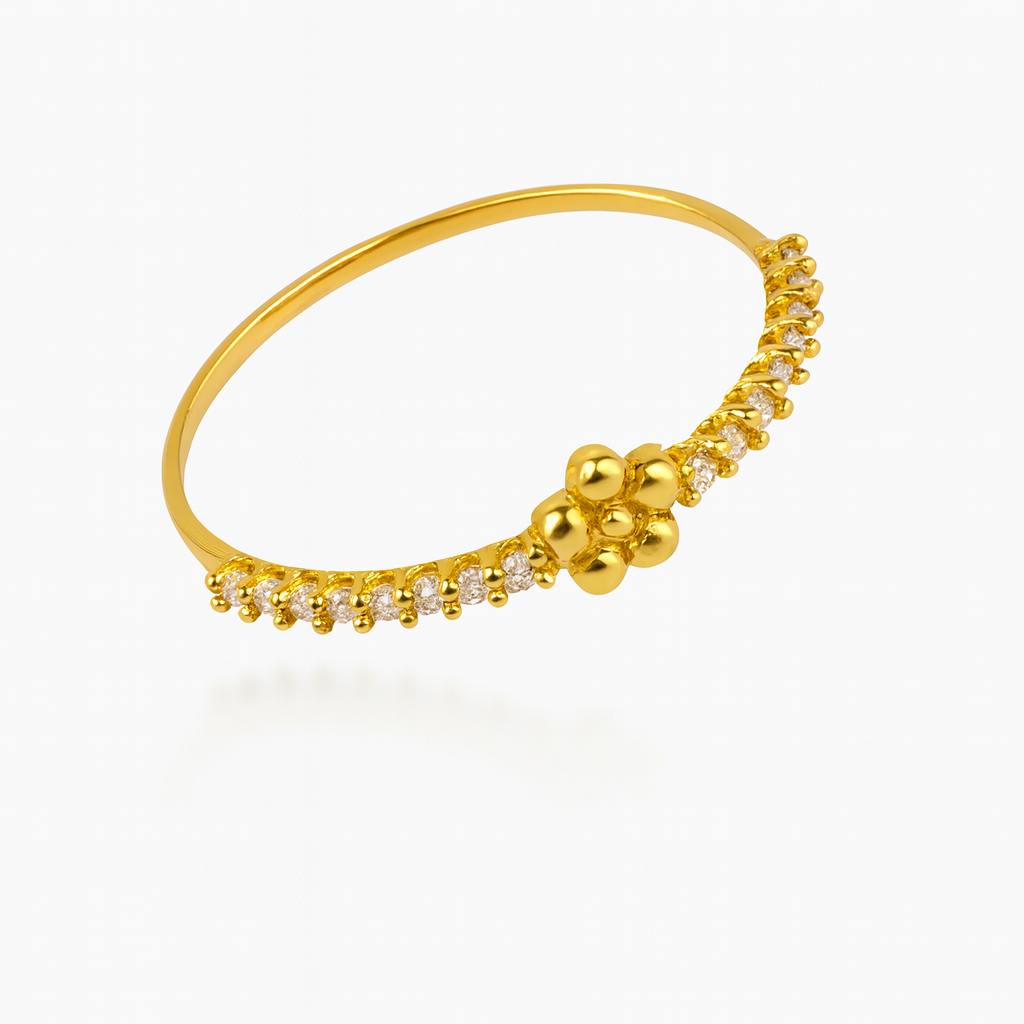 Anel flor amarela em ouro 18k com zircônias laterais.