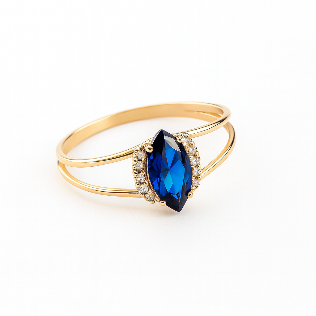 Anel formatura em ouro 18k com navete 4x8mm e 8 pedras redondas zircônia.