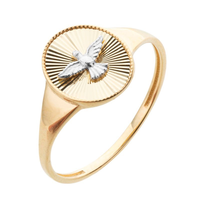 Anel oval com Espírito Santo em ouro amarelo 18k e ouro branco.