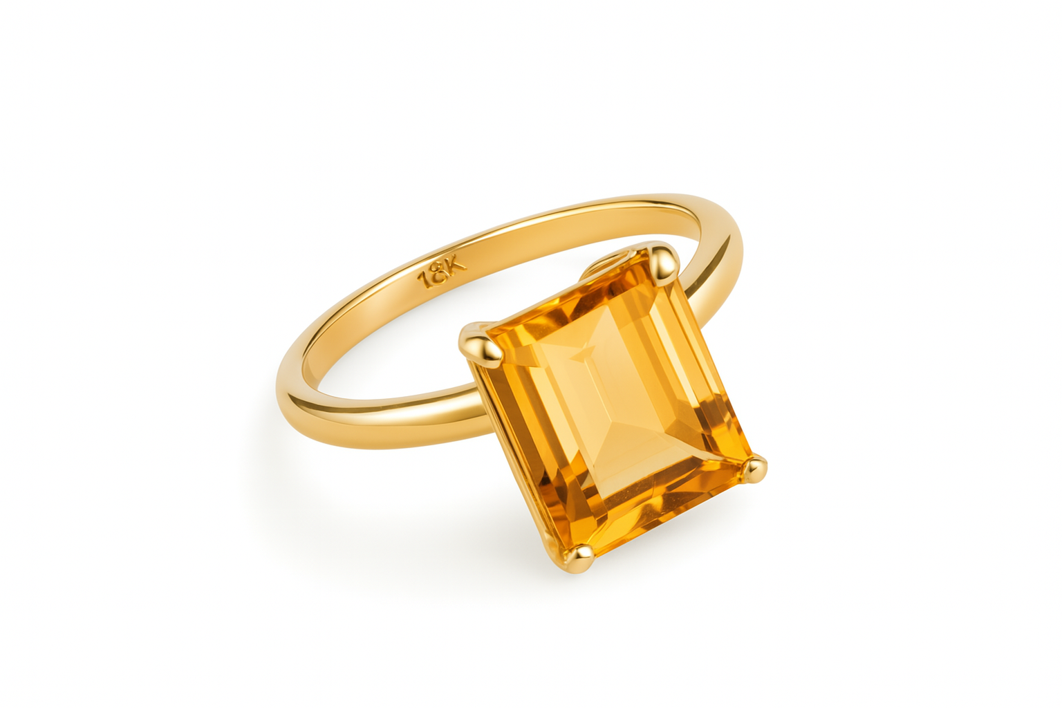Anel em ouro 18k com pedra quadrada natural (citrino e cristal fumê).