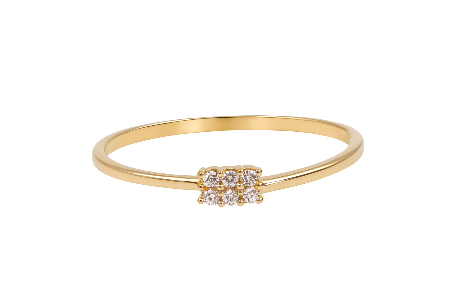 Anel em ouro 18k com retângulo com 6 zircônias.