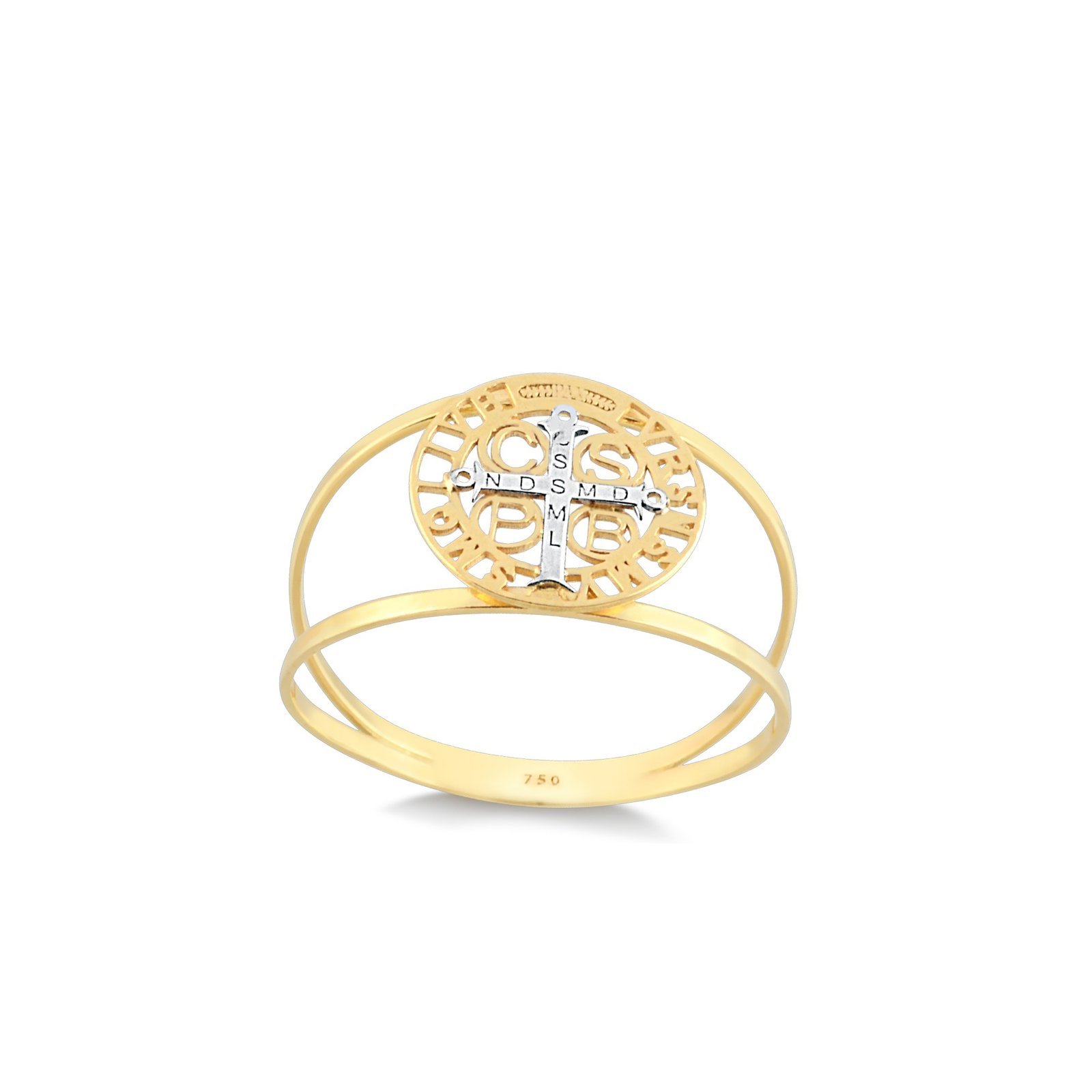 Anel São Bento em ouro amarelo 18k e ouro branco.