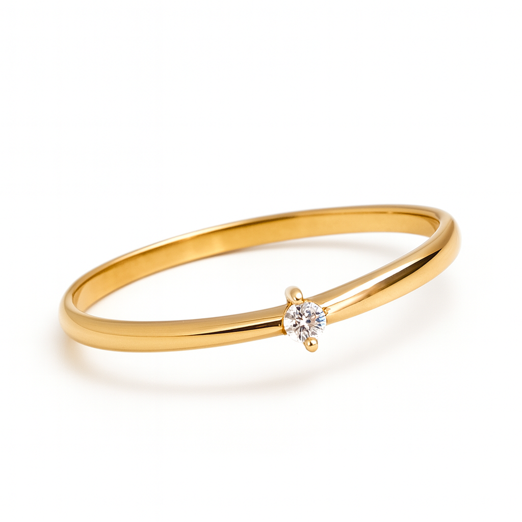 Anel solitário em ouro 18k com zircônia.