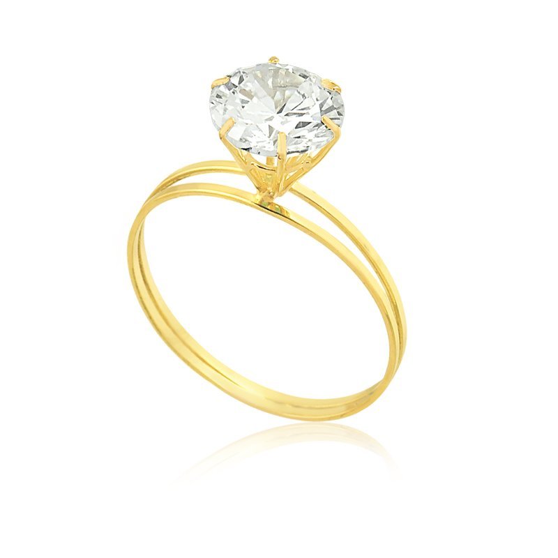 Anel Solitário 2 aros em ouro 18k com Zircônia.