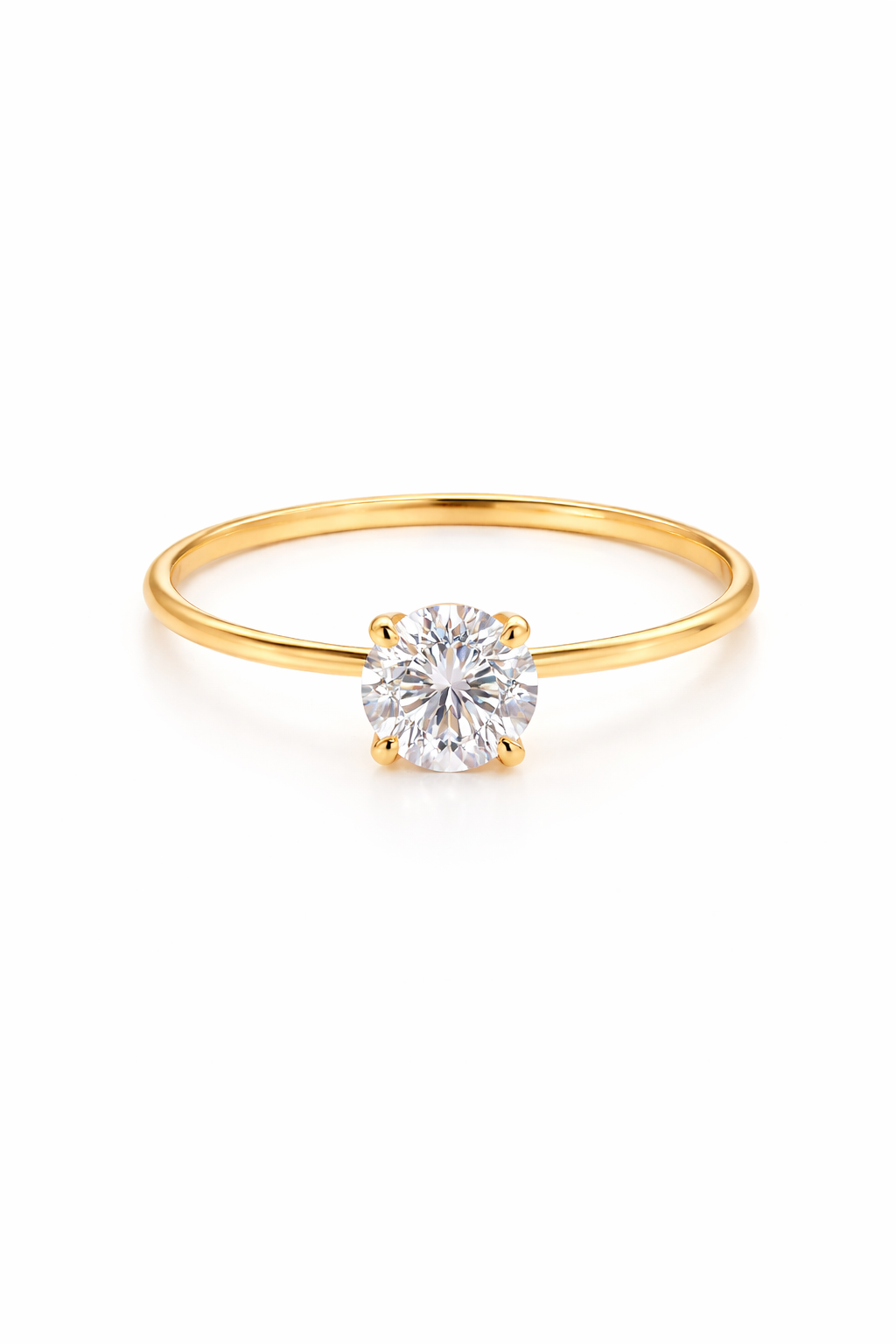 Anel solitário cálice em ouro 18k com zircônia de 6mm.