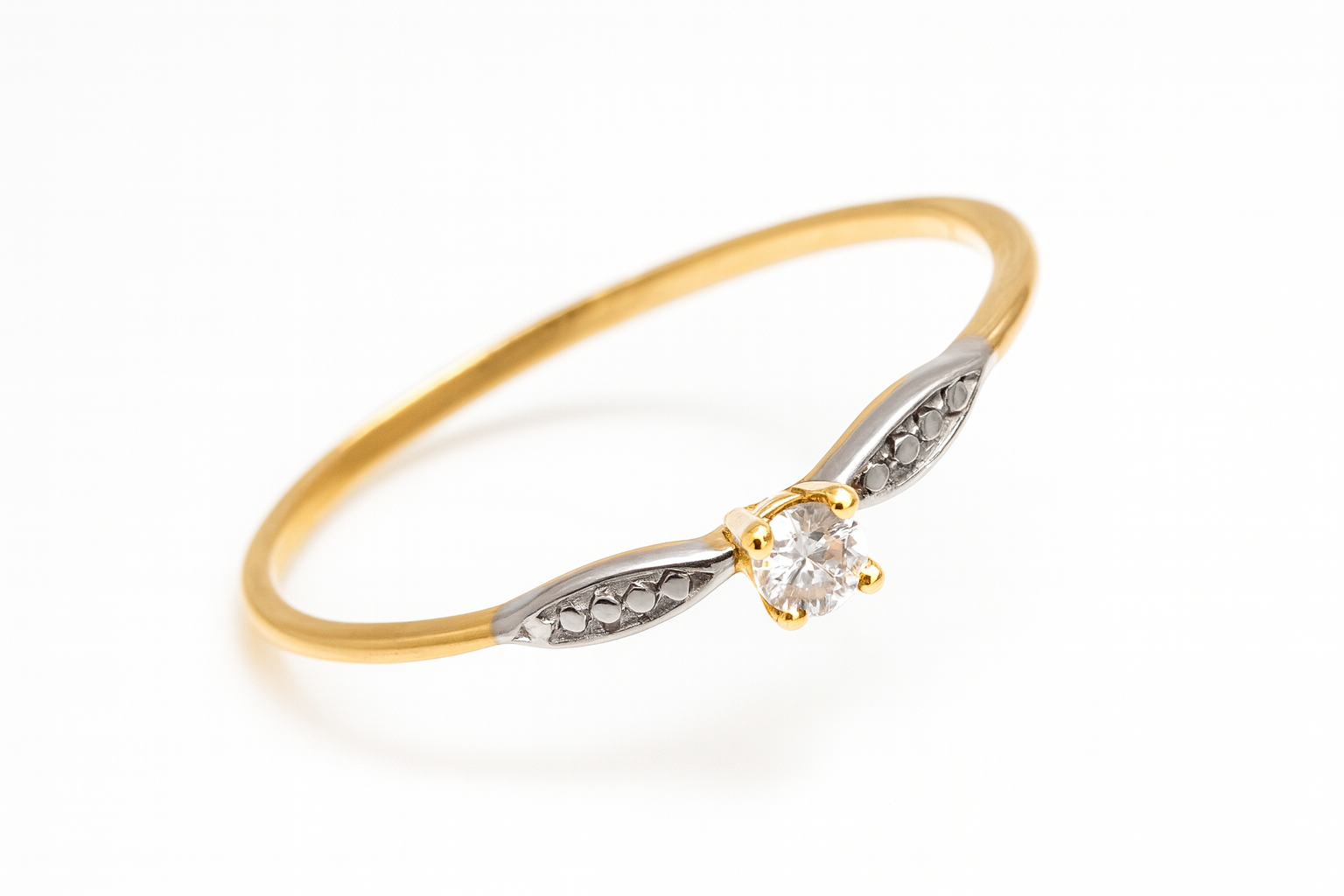 Anel solitário em ouro amarelo 18k e laterais em ouro branco com zircônia.