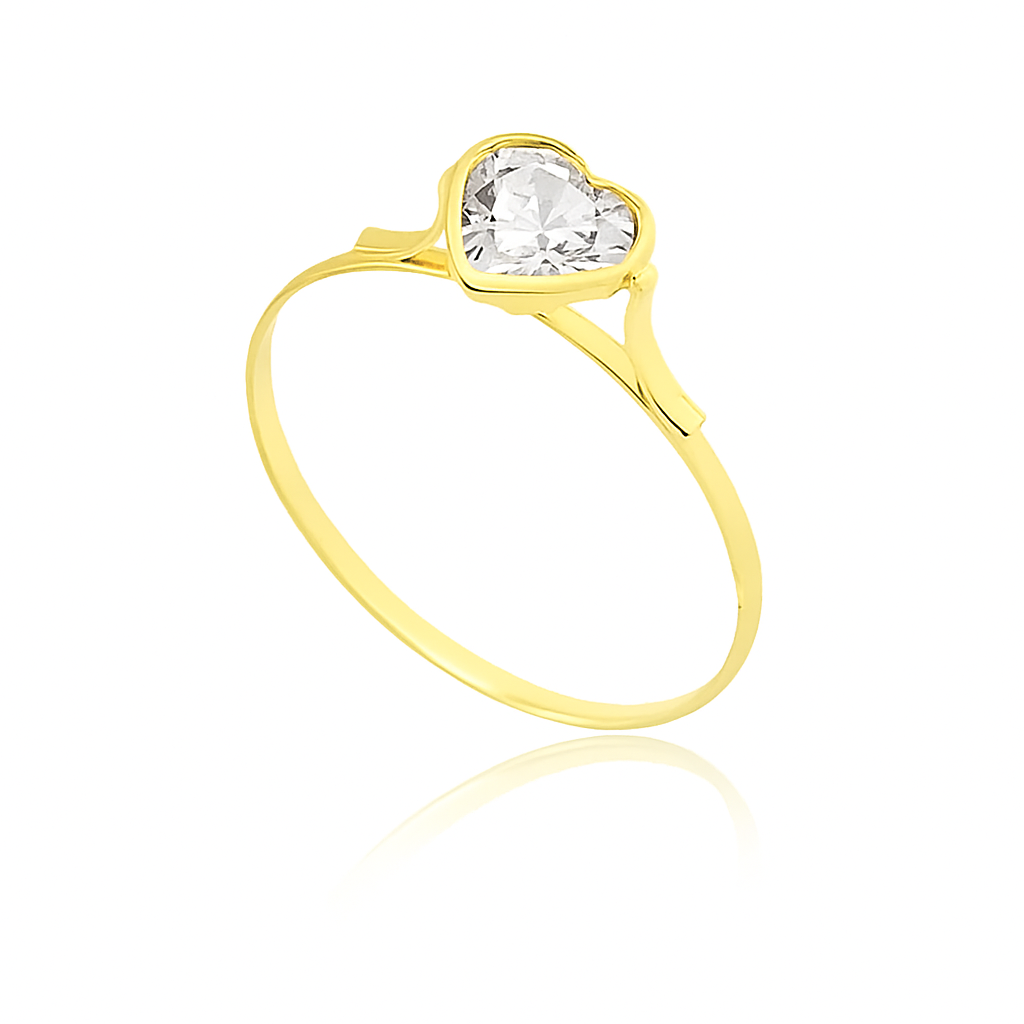 Anel Coração em ouro 18k com zircônia de 6mm.