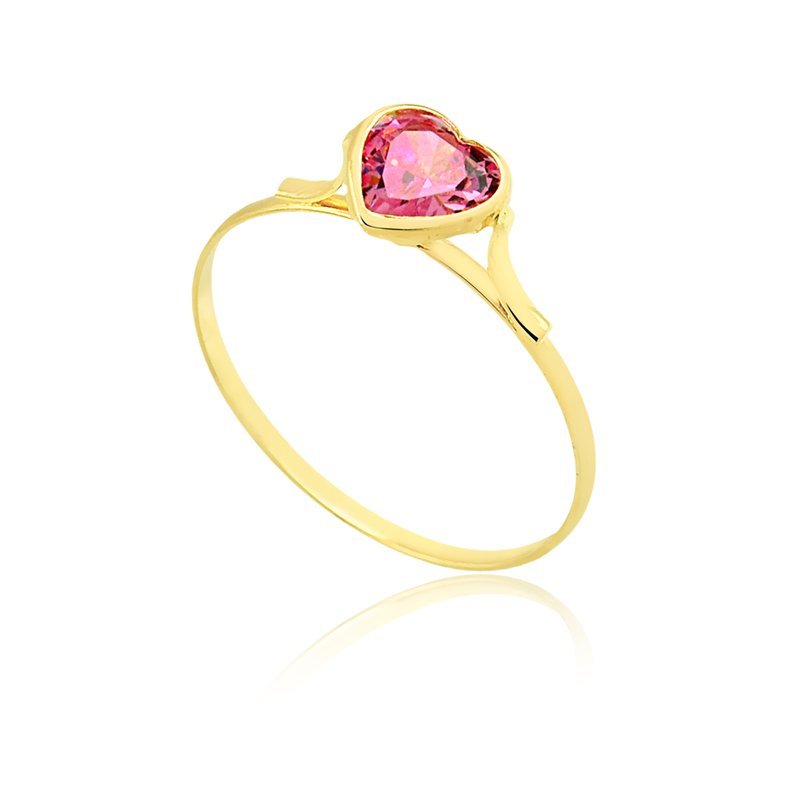Anel solitário coração em ouro 18K com zircônia.