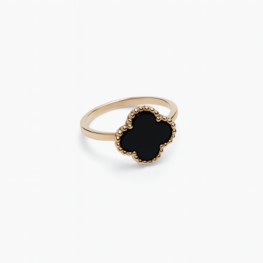 Anel trevo em ouro 18k com pedra Ônix de 10x10mm.