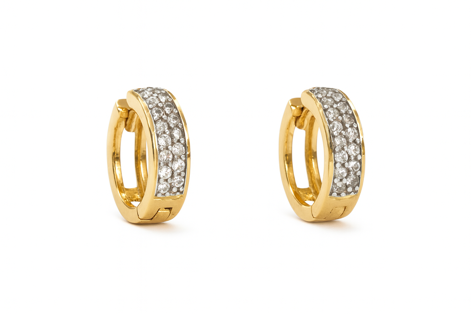 Argola redonda em ouro 18k com 2 fileiras de zircônias.