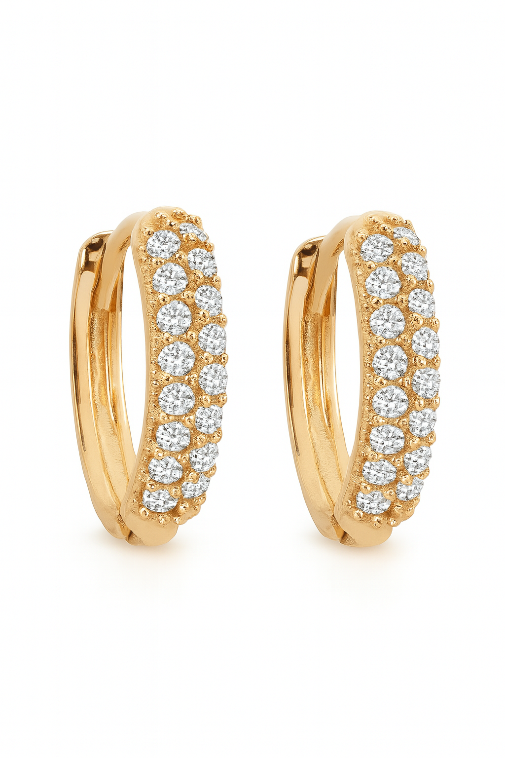 Argola redonda em ouro 18k com 2 fileiras de zircônias.
