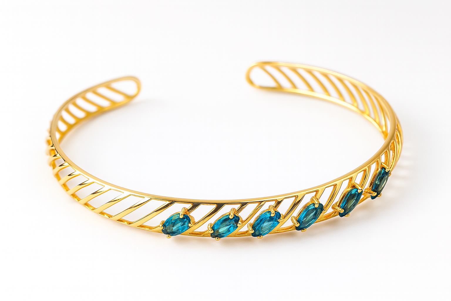 Bracelete fios em ouro 18k com 6 topázios london navetes.