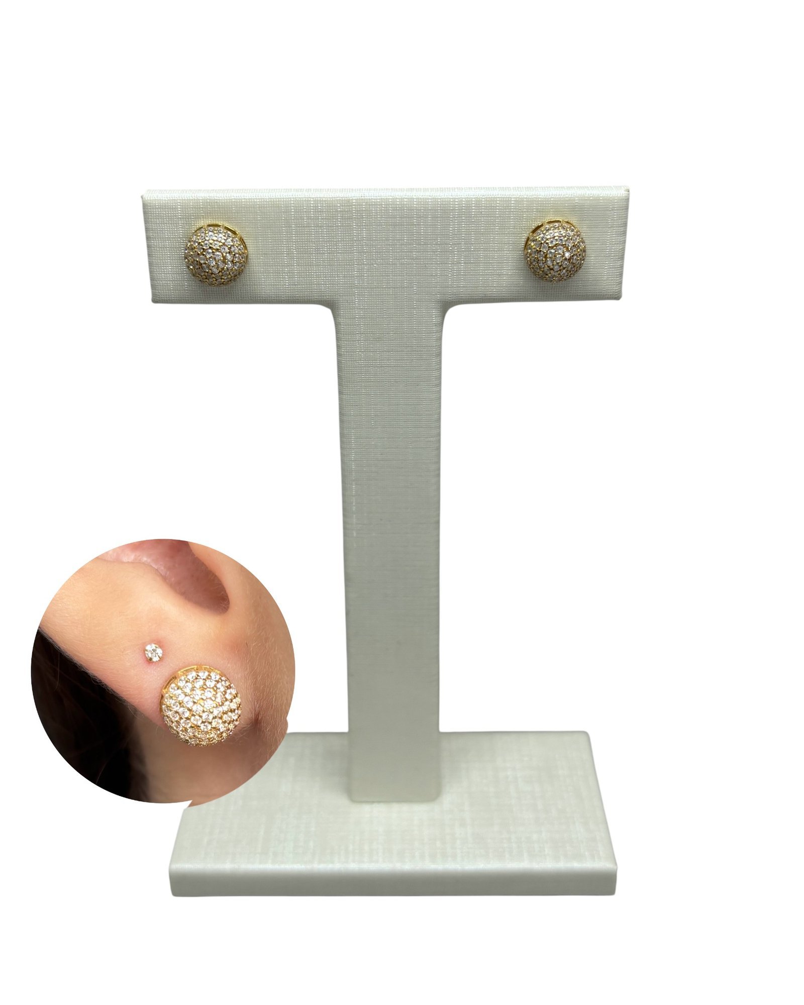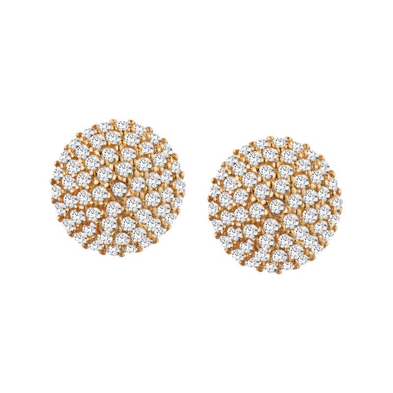 Brinco chuveiro redondo em ouro amarelo 18k com zircônias.