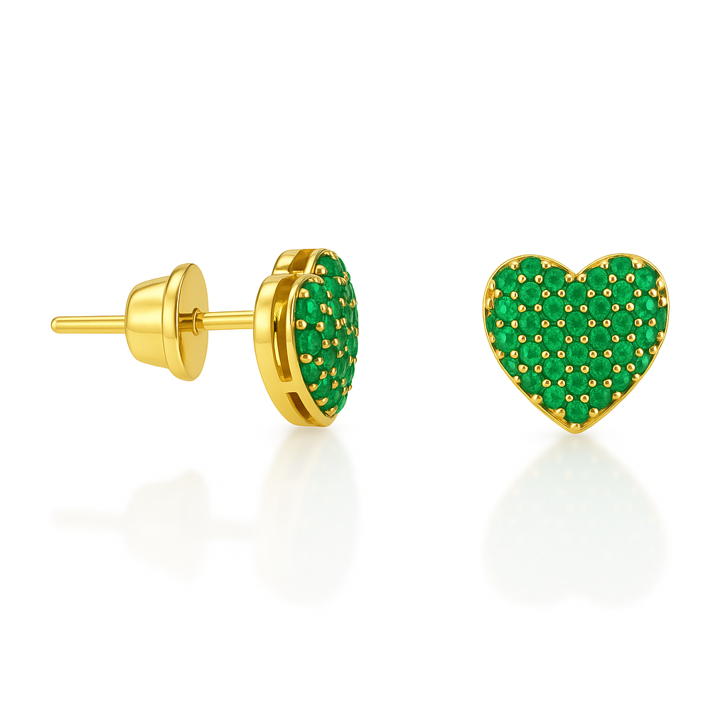 Brinco chuveiro coração galeria P em ouro 18k cravejado com zircônias.