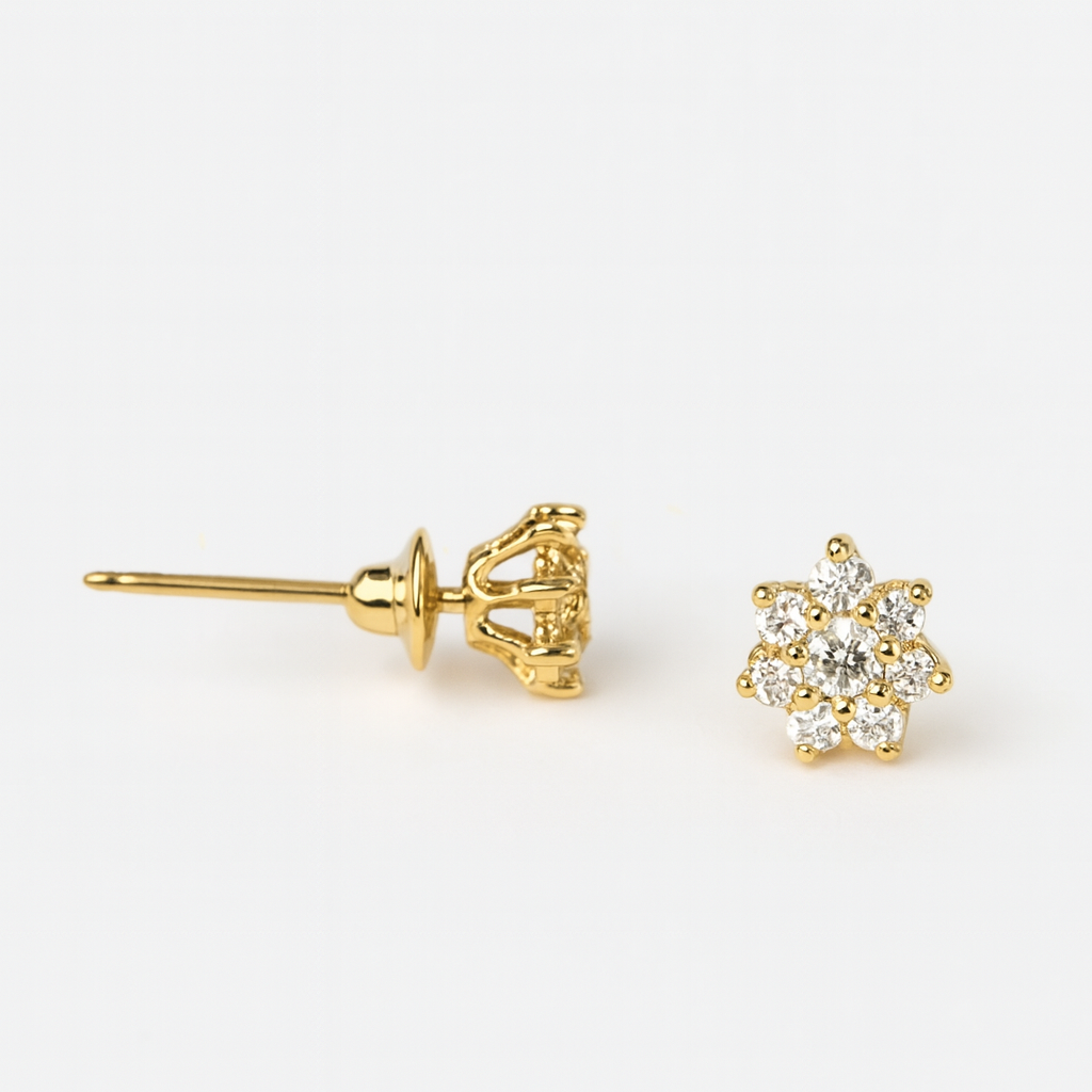 Brinco chuveiro flor em ouro 18k com 18 brilhantes.