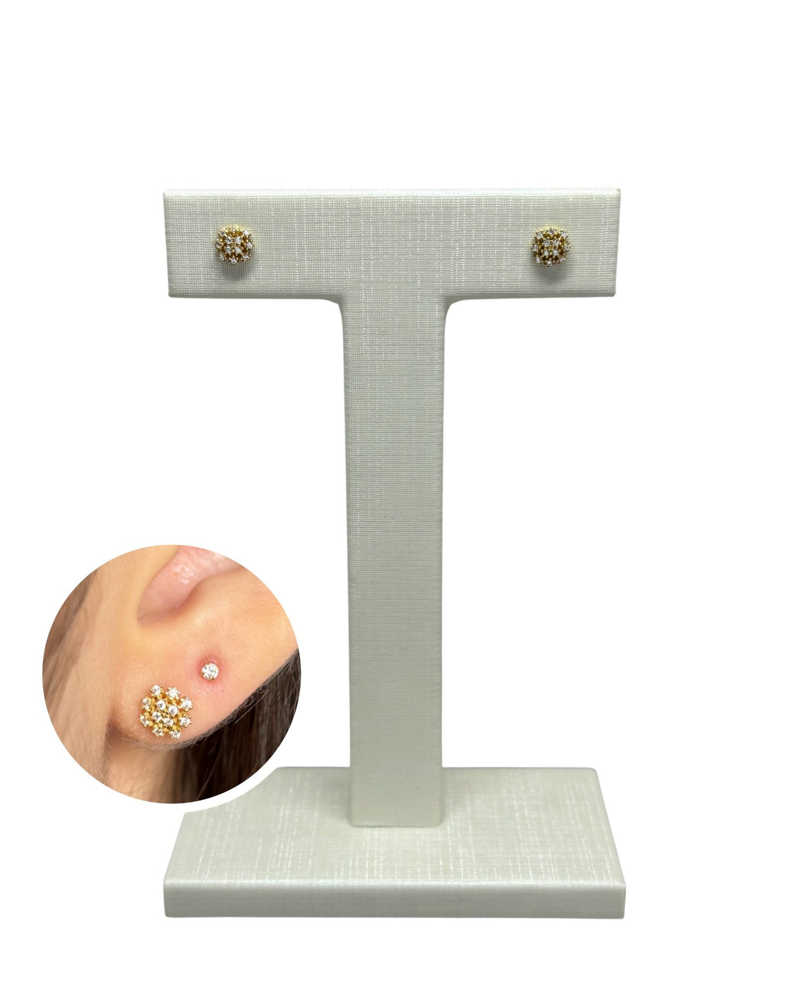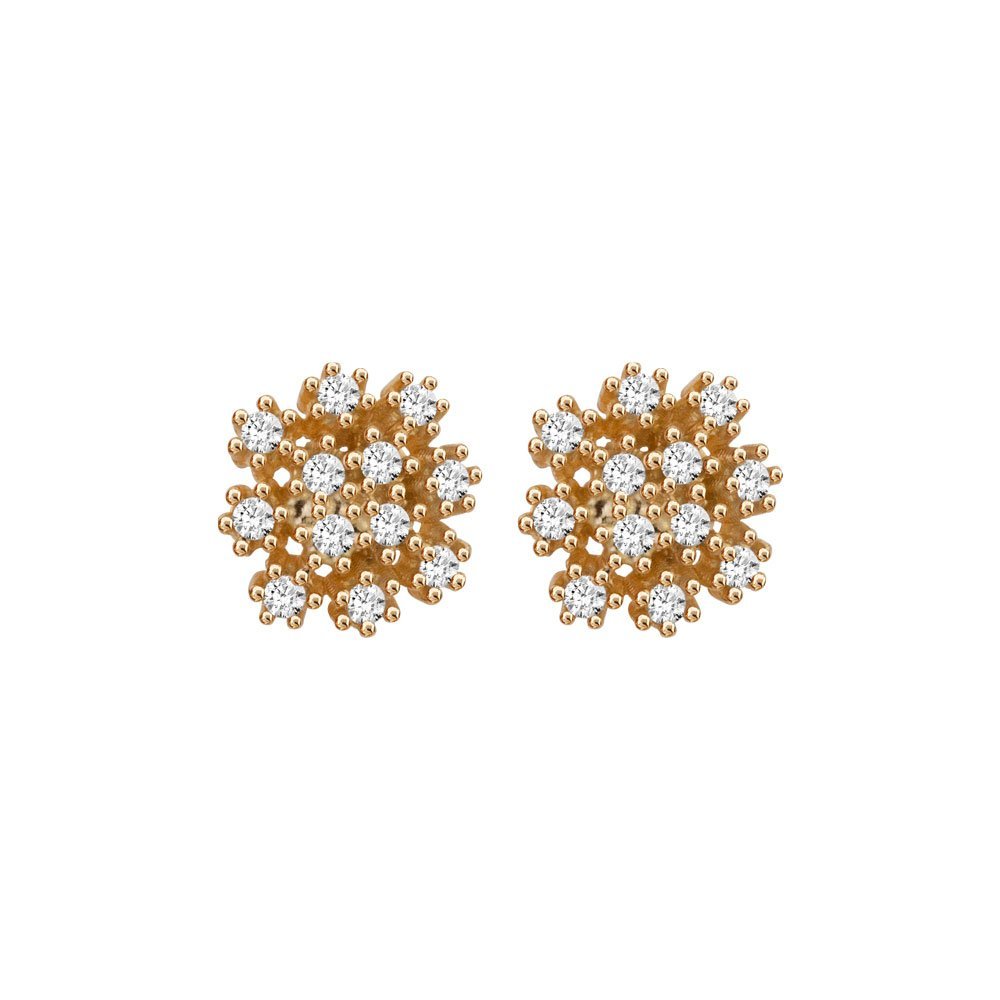 Brinco chuveiro flor em ouro 18k com zircônias.