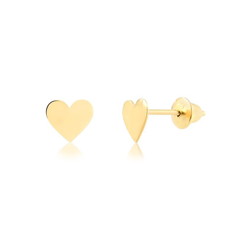 Brinco coração placa em ouro 18k.