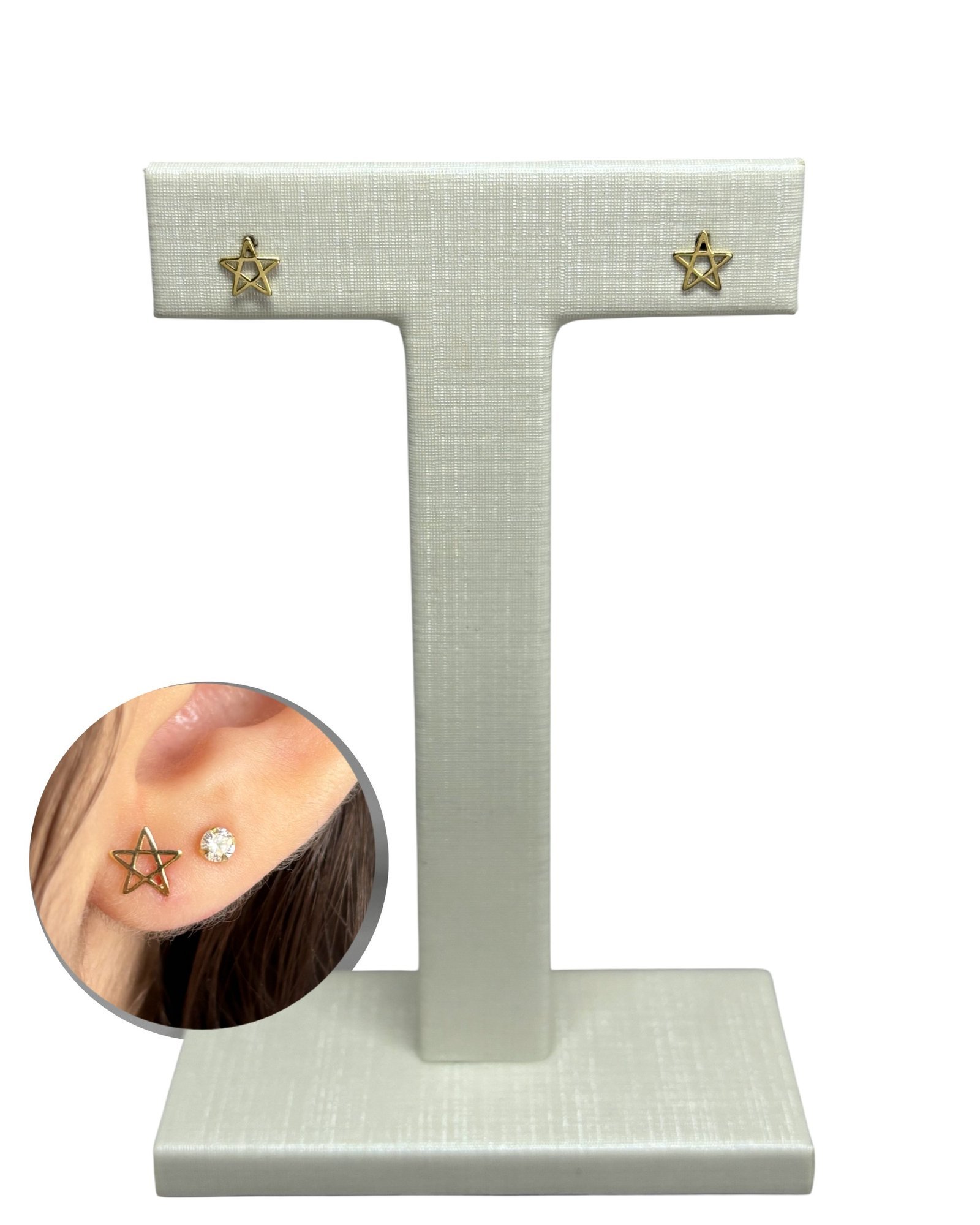 Brinco estrela dalva P vazada em ouro 18k.