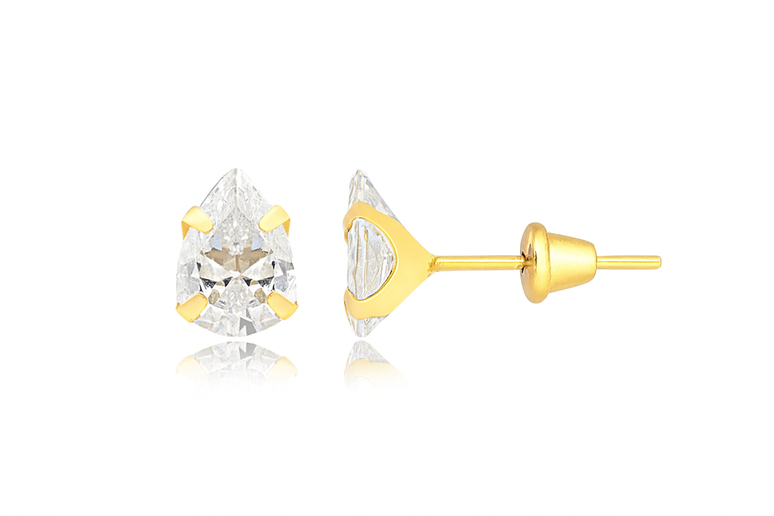 Brinco gota ouro 18k com zircônia 5x7mm