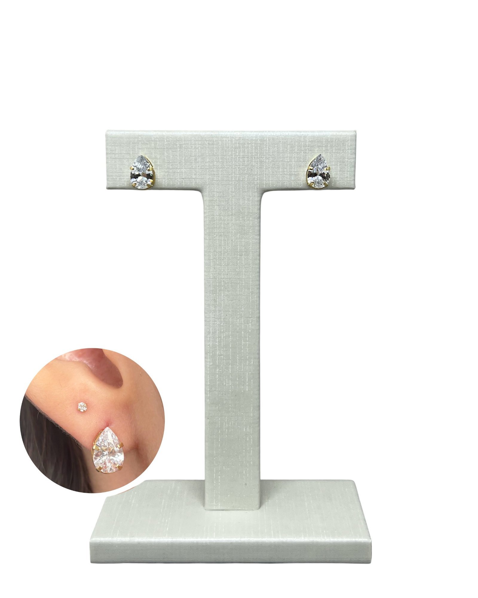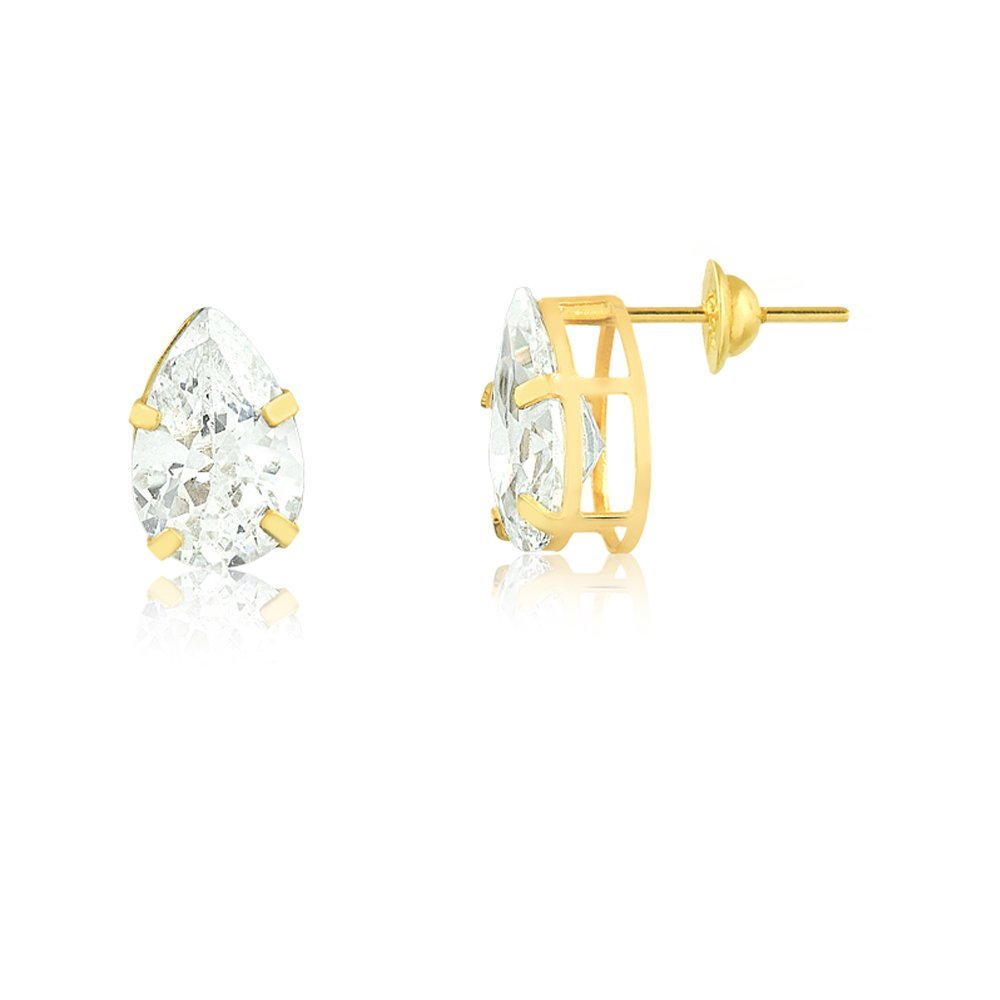 Brinco gota galeria em ouro 18k com pedra zircônia de 6x9mm.