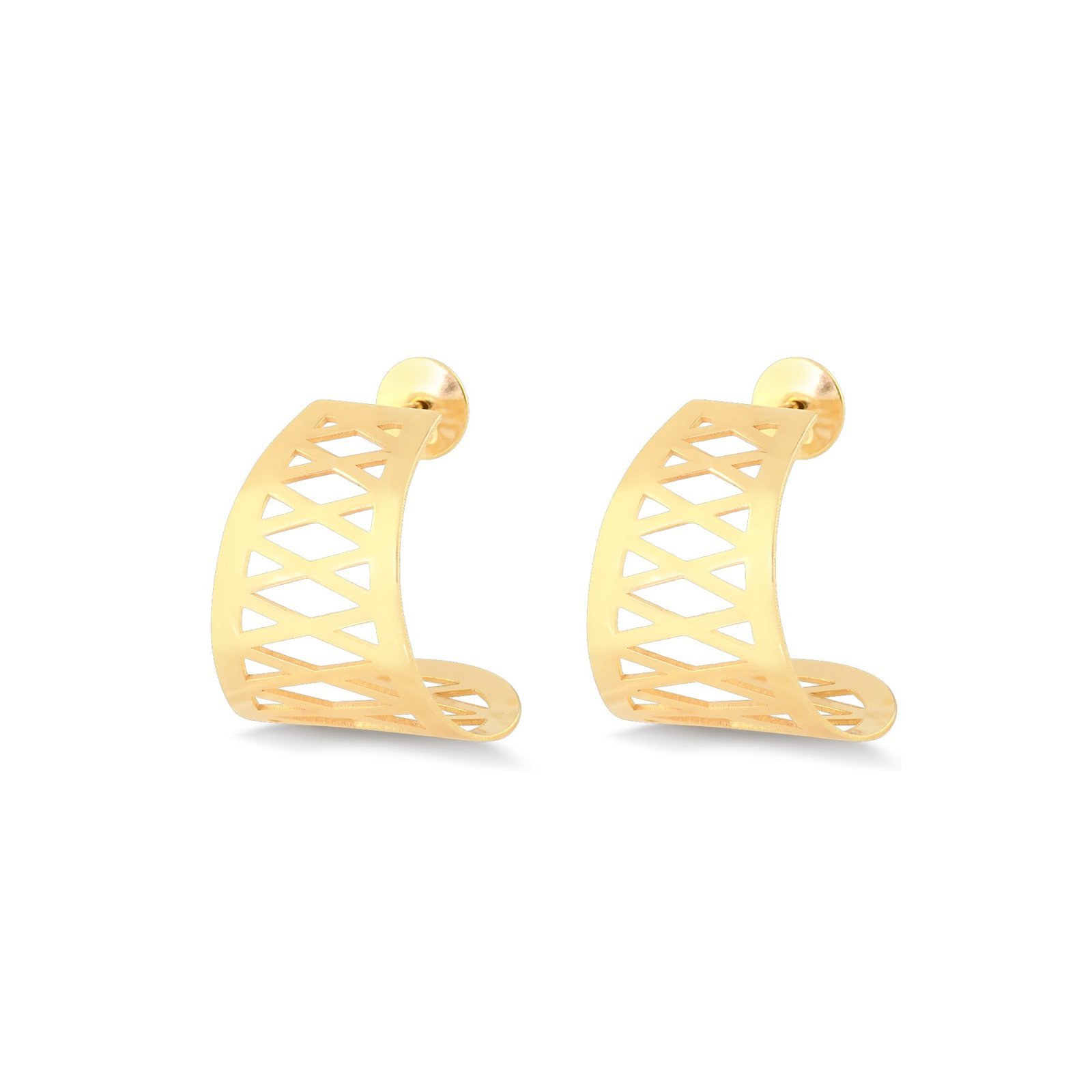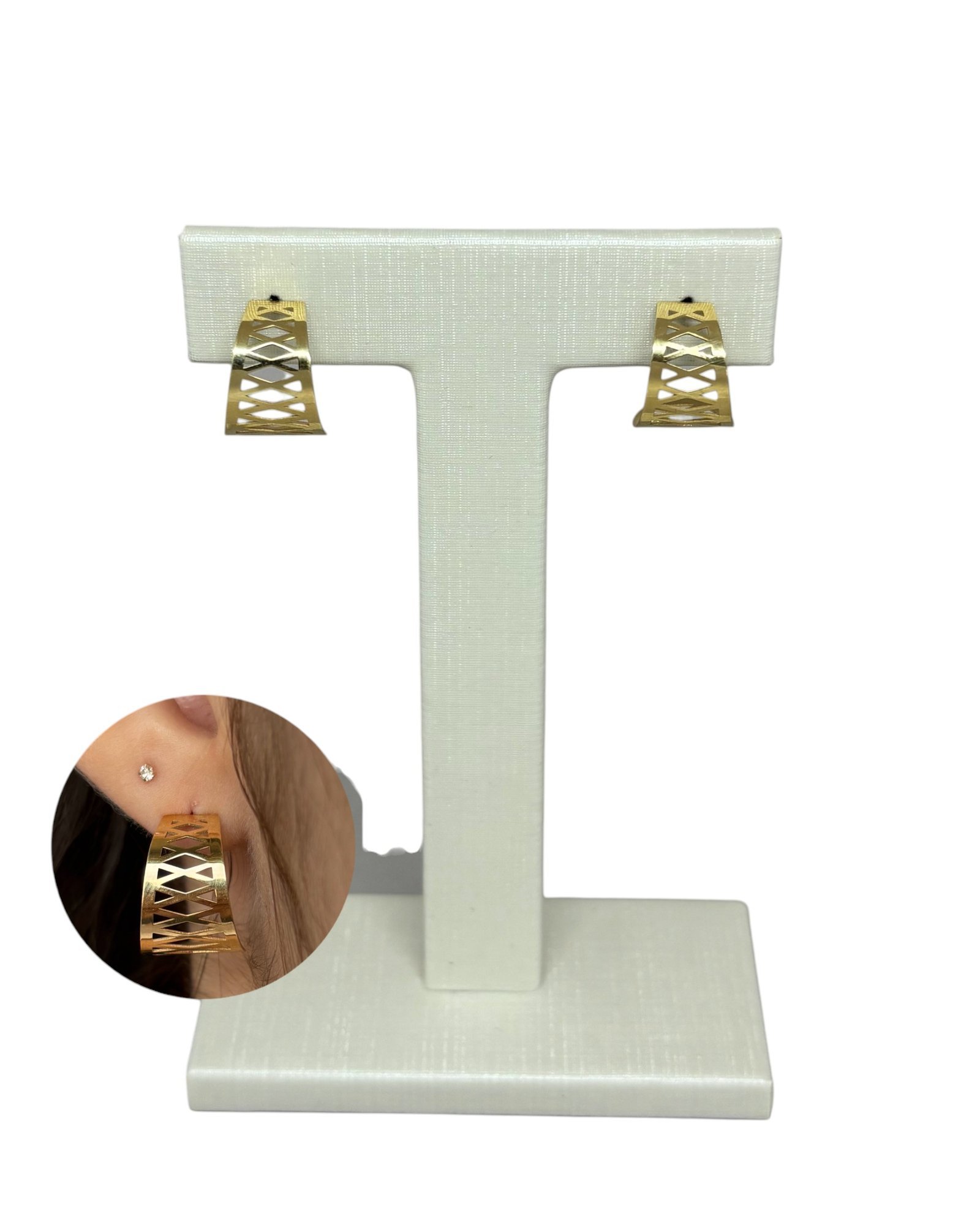 Brinco 1/2 argola boleada vazada em ouro 18k.