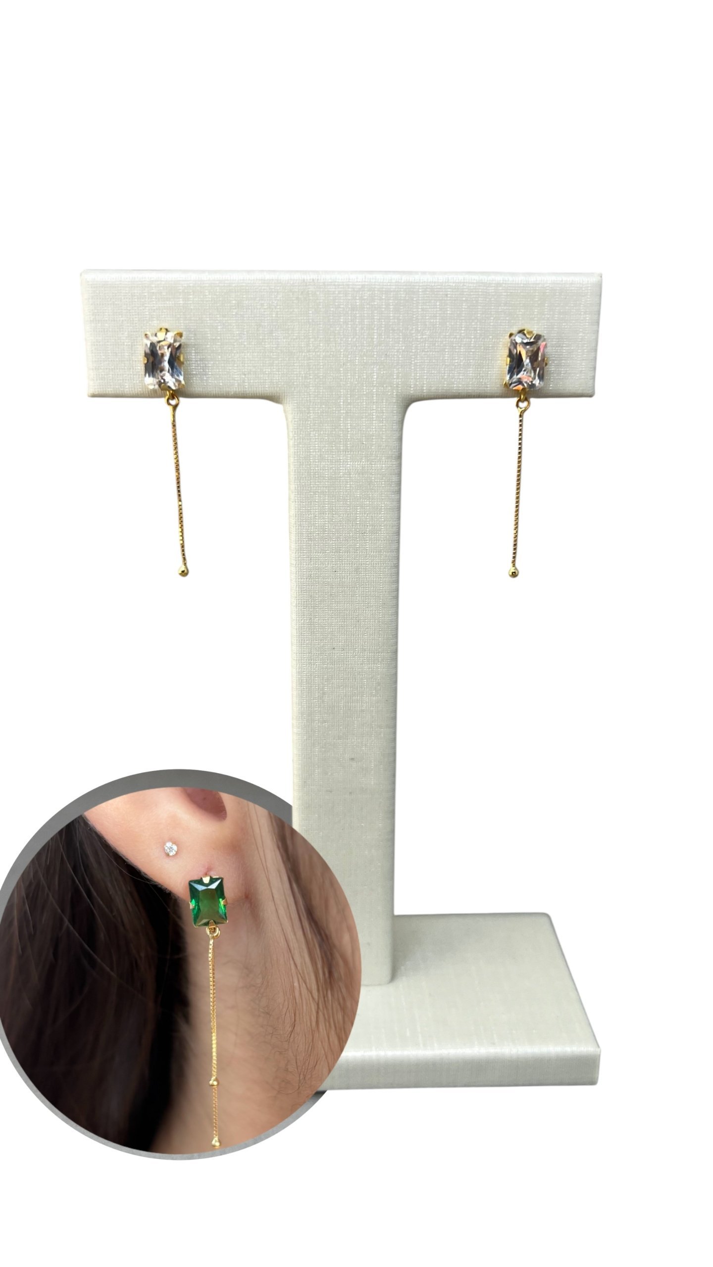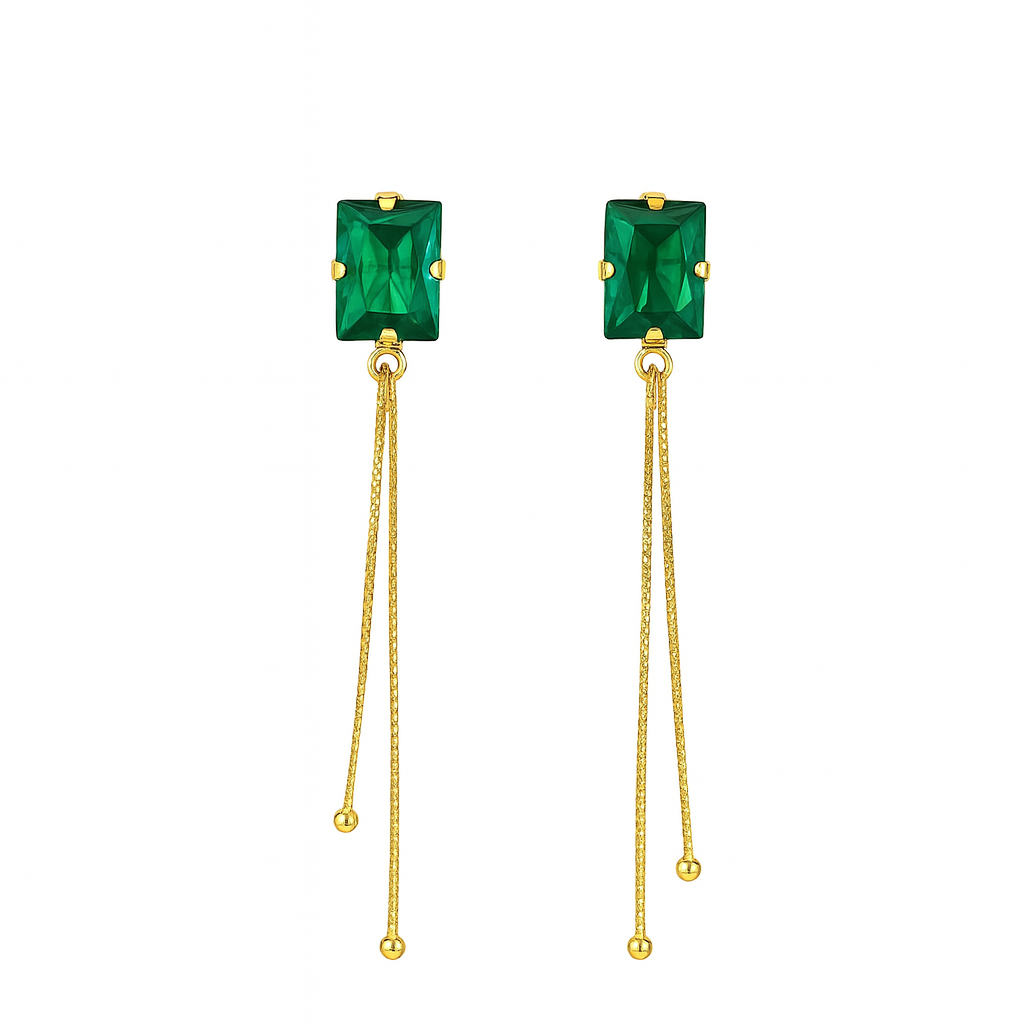 Brinco pedra quadrada e veneziana em ouro 18k com zircônias.