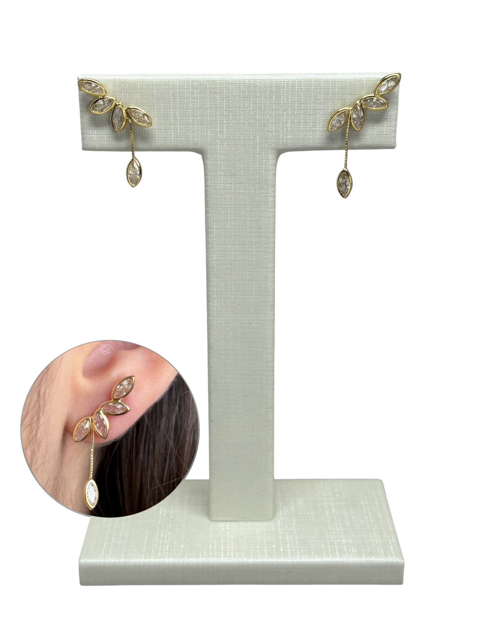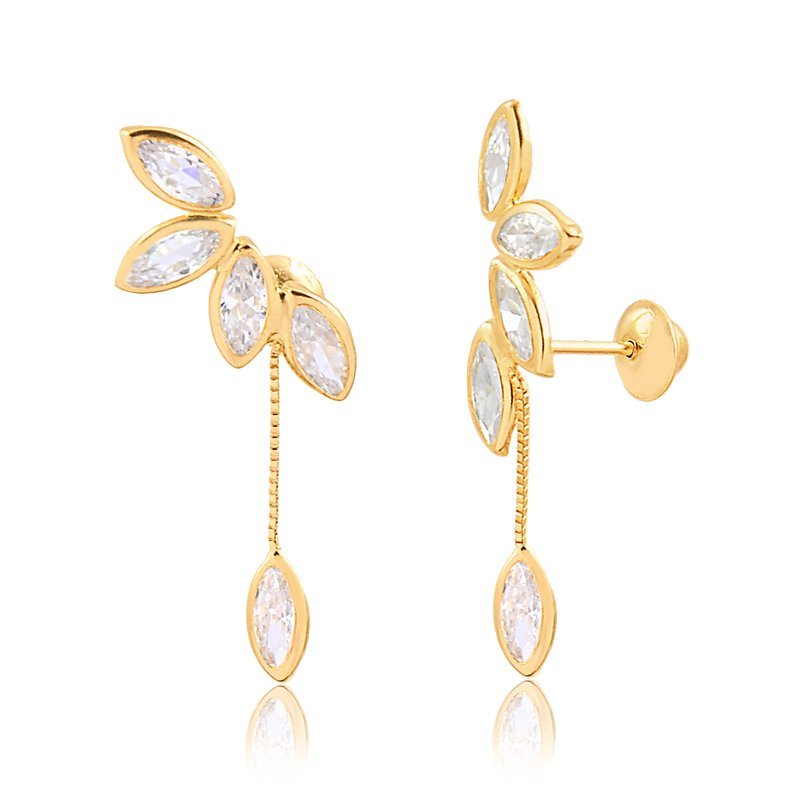 Brinco em ouro 18k com veneziana e 4 navetes de zircônia.