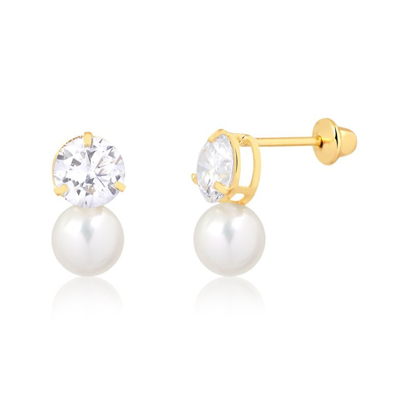 Brinco ponto de luz galeria em ouro 18k com pérola e zircônia.