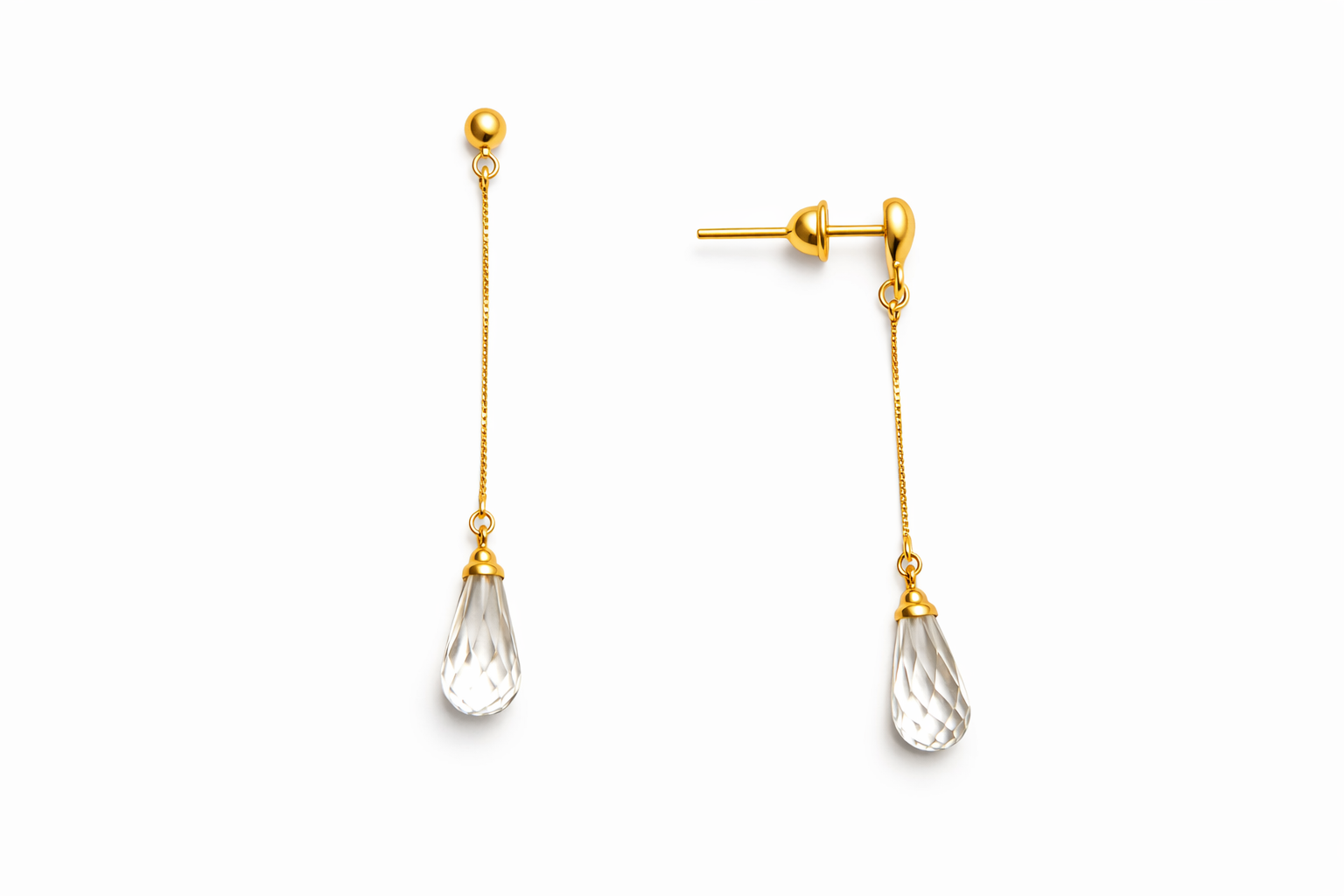 Brinco veneziana em ouro 18k com gota cristal natural.