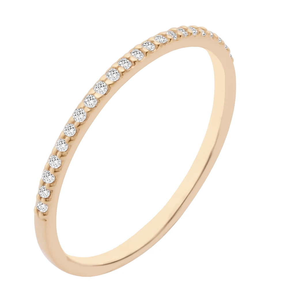Meia aliança em ouro 18k com 22 zircônias.