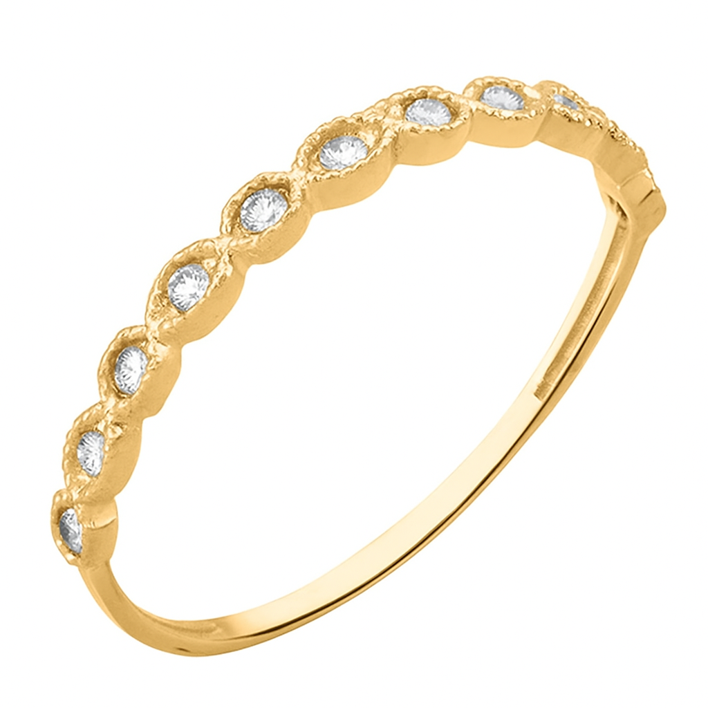 Meia aliança em ouro 18k com 11 zircônias.