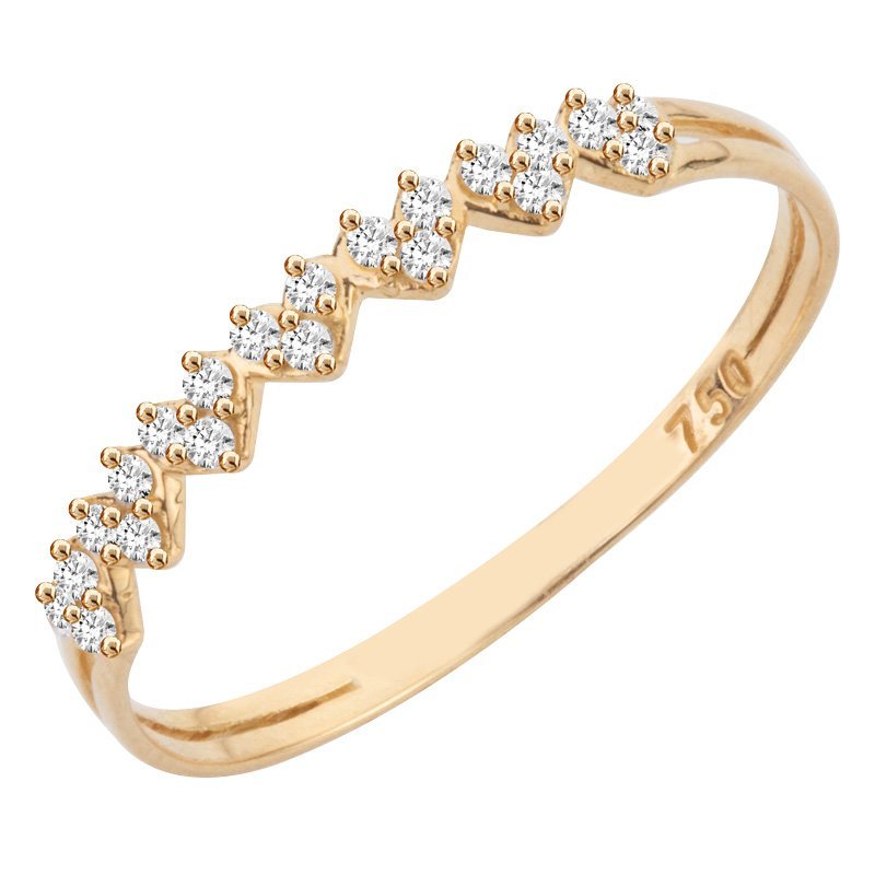 Meia aliança corações em ouro 18k com 21 zircônias.