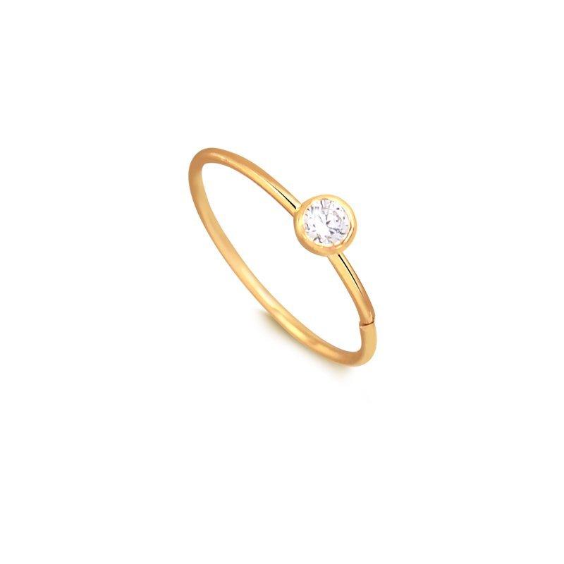 Piercing círculo pedra M em ouro 18k com zircônia.