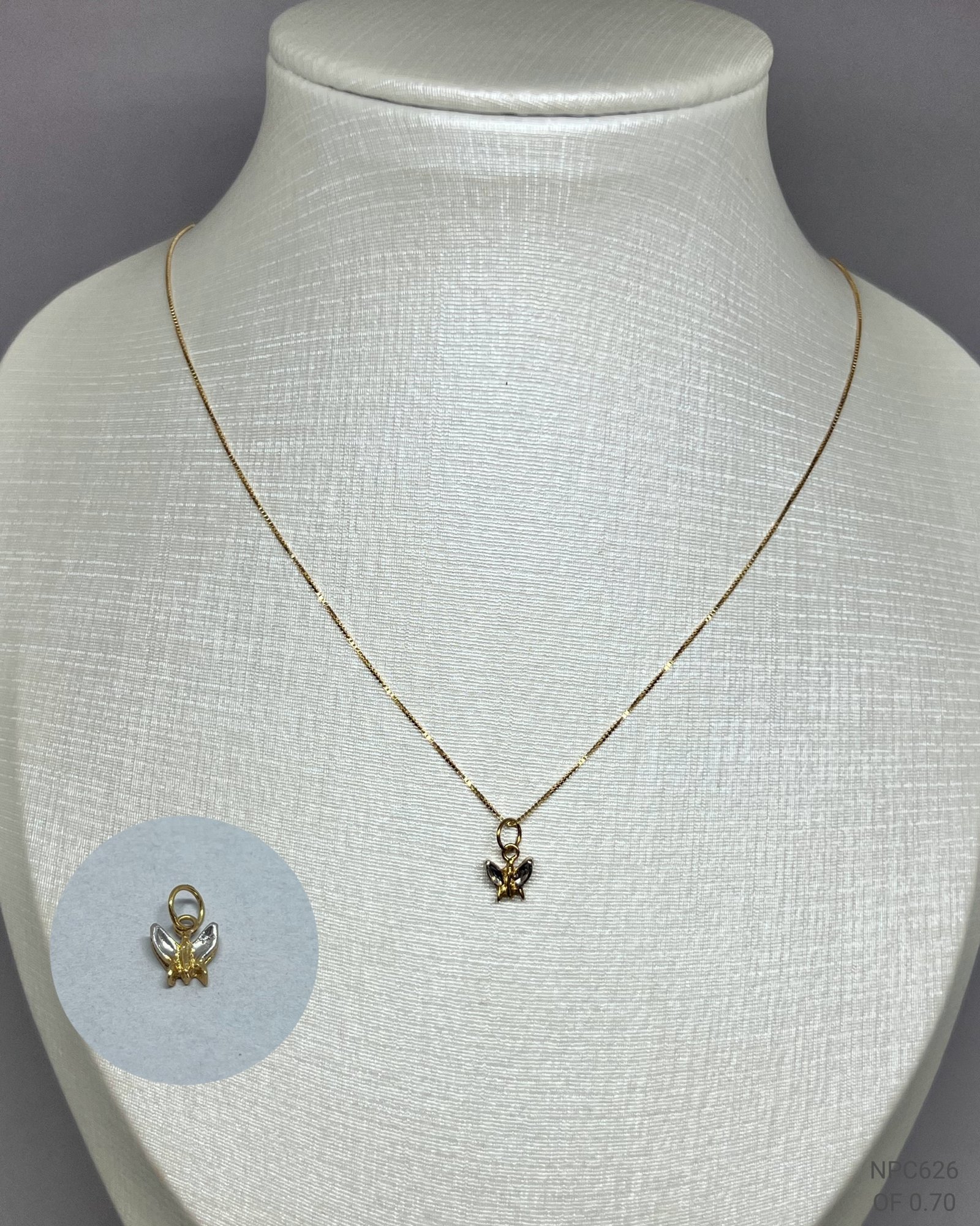 Pingente borboleta mini em ouro amarelo 18k e ouro branco.