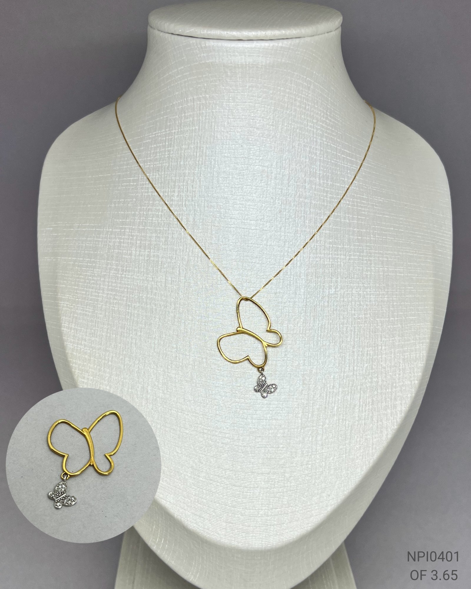 Pingente borboletas em ouro 18k com 10 brilhantes.