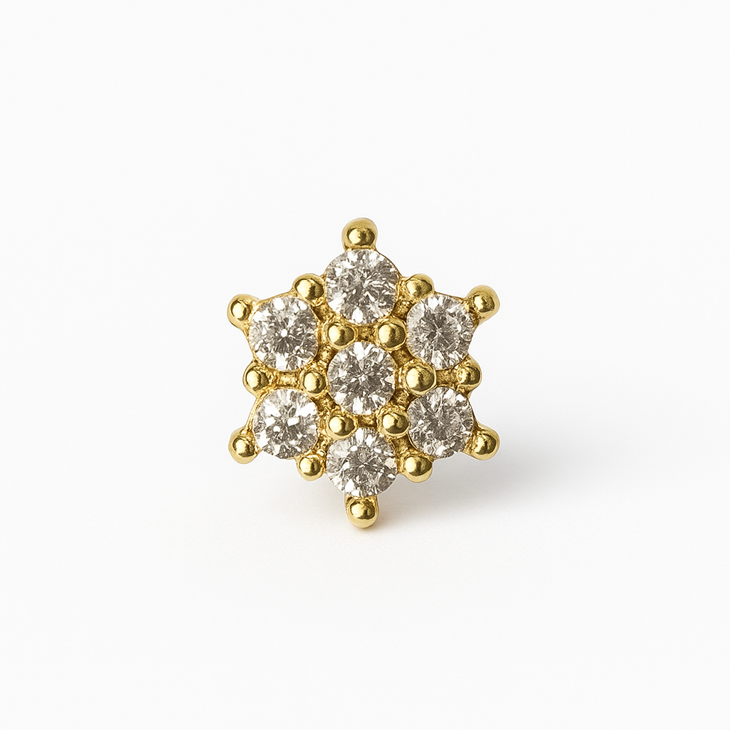 Pingente chuveiro flor P em ouro 18k com zircônias.