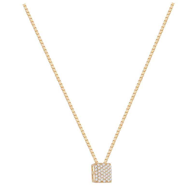 Pingente quadrado galeria em ouro 18k com zircônias.
