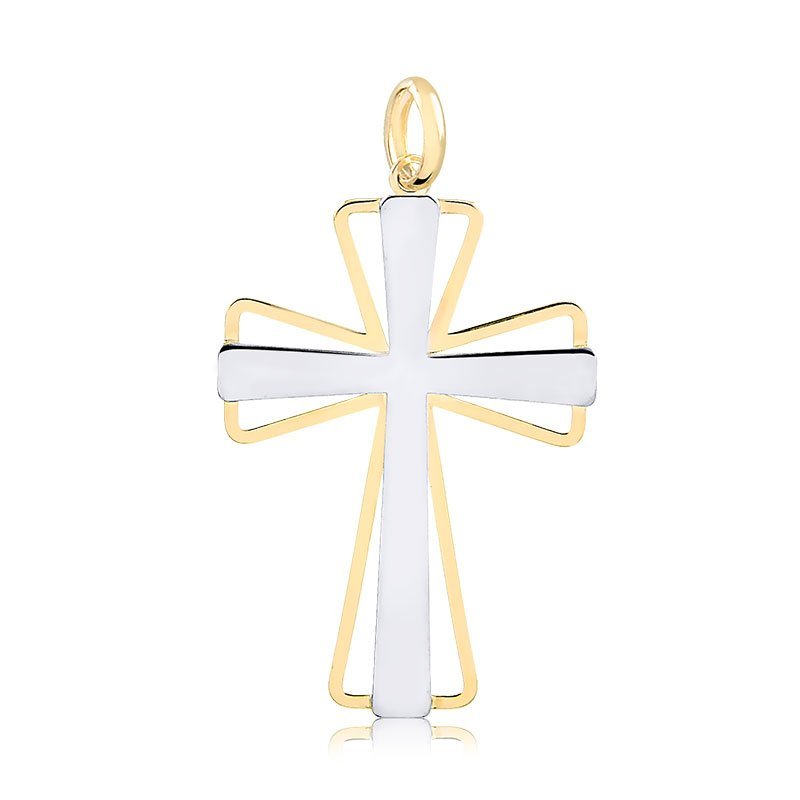 Pingente cruz M em ouro amarelo 18k e ouro branco.