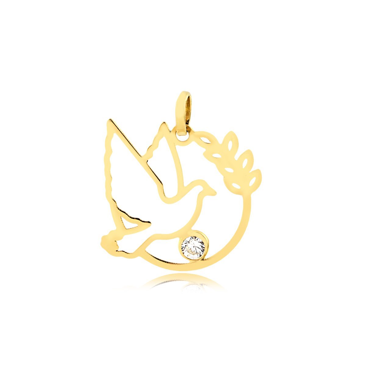 Pingente Espírito Santo vazado em ouro 18k com zircônia.