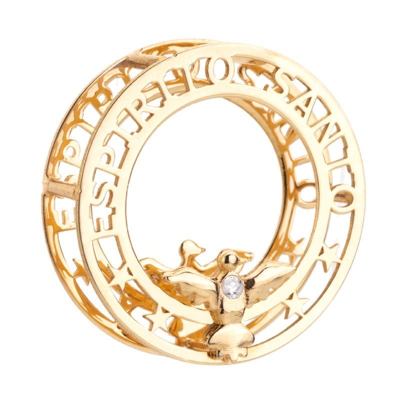 Pingente Espírito Santo mandala em ouro 18k com 1 zircônia.