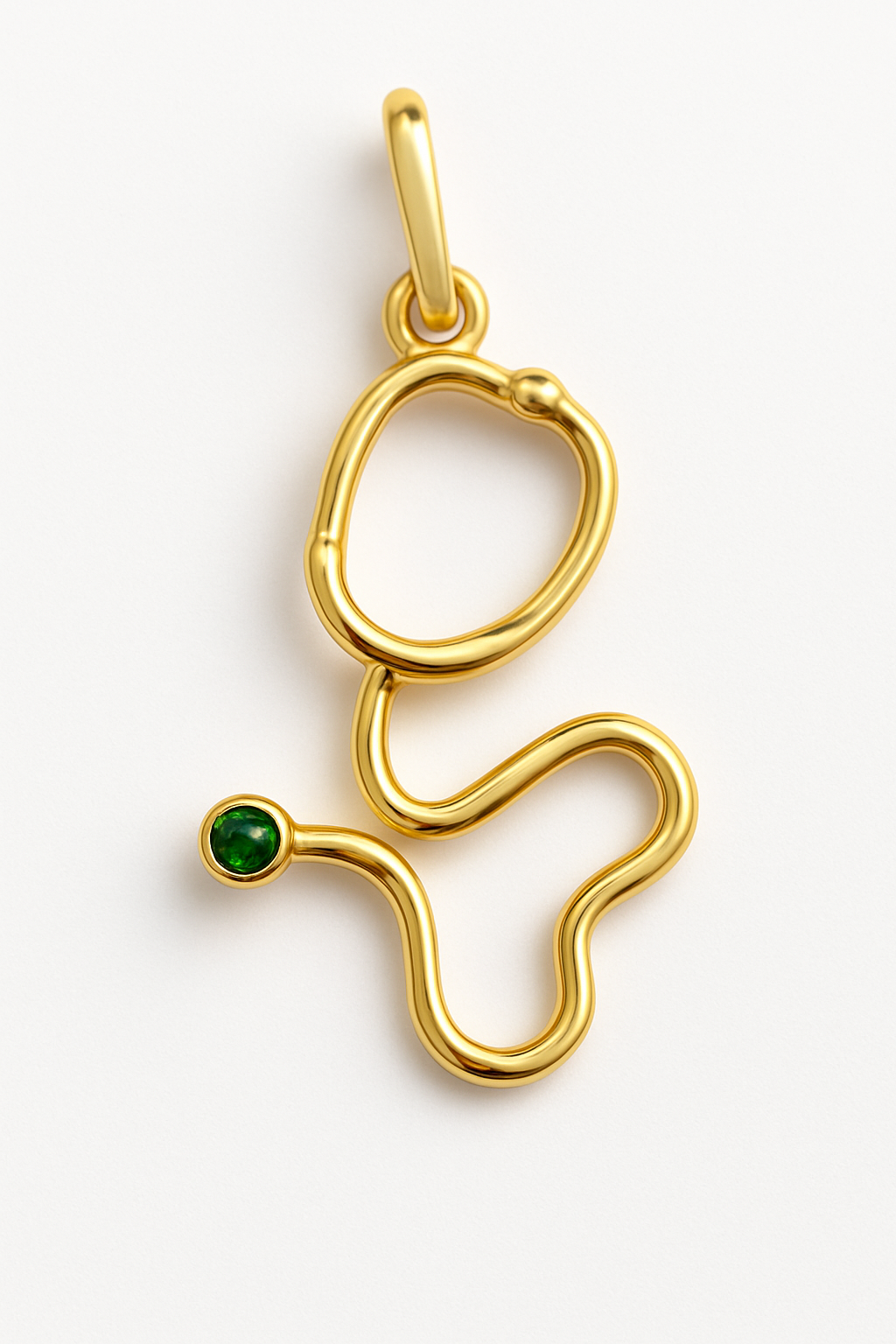 Pingente estetoscópio coração em ouro 18k com esmeralda.