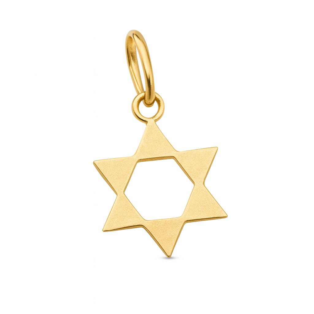 Pingente estrela de Davi medindo 10mm de diâmetro em ouro 18k.