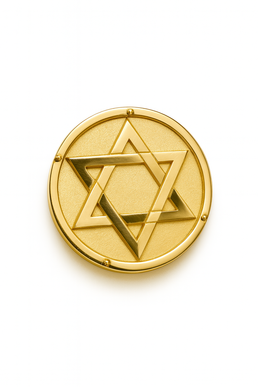 Pingente estrela de Davi galeria medindo 18mm de diâmetro em ouro 18k.