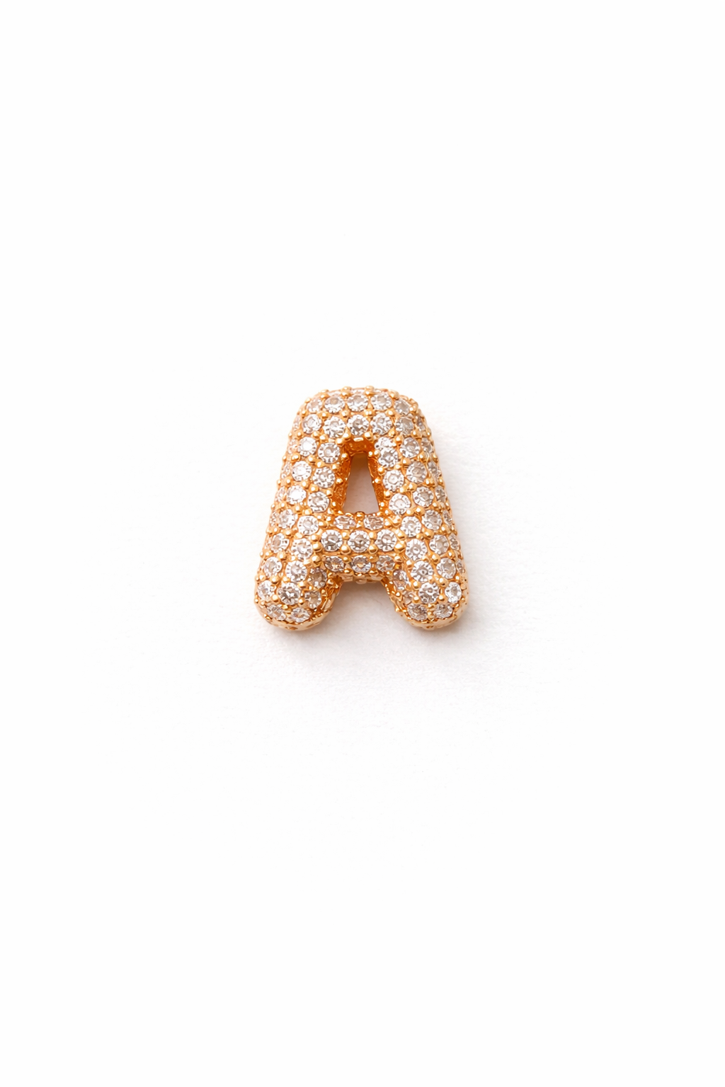 Pingente letra A galeria em ouro 18k cravejado em zircônias.